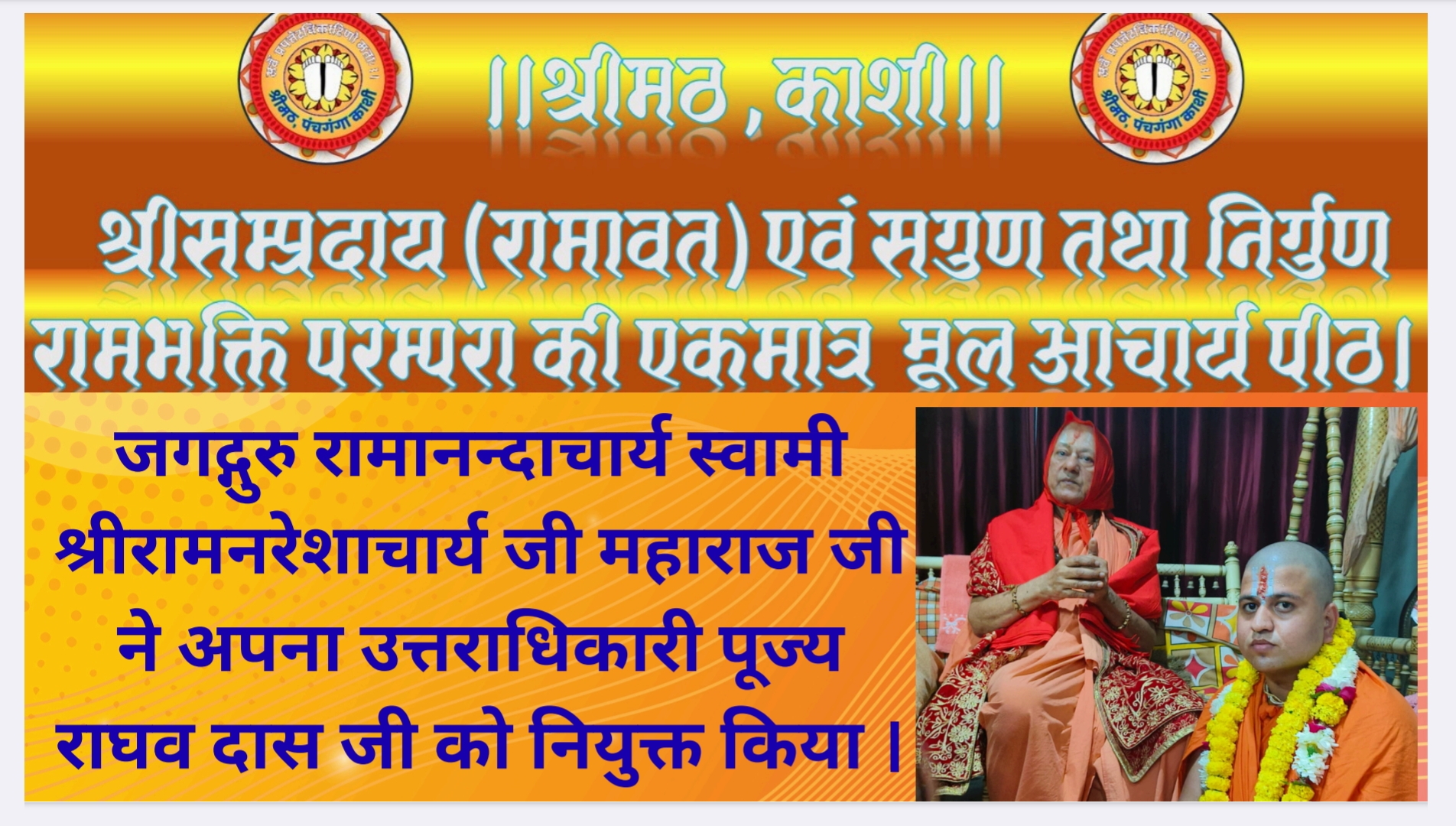 श्री रामानन्दाचार्य पद अनुगामी मिथिलाधिपति । ।